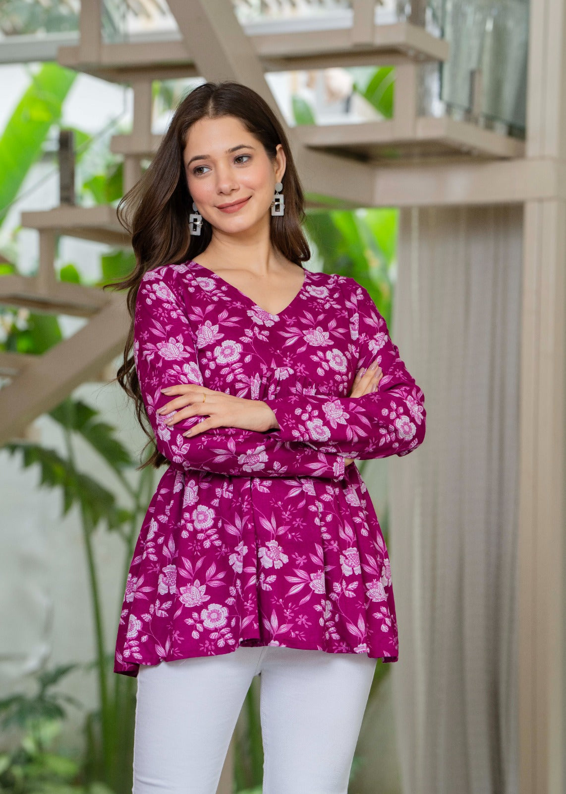 Purple Floral Flare Cotton Top – Vastra Ethnic